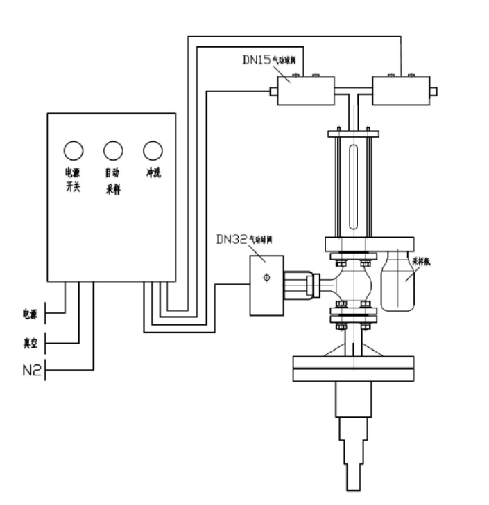 ⑥能夠實現液體樣品的定量精準抽取,取樣結束還能對取樣裝置進行沖洗,使用氮氣作為取樣裝置內部的填充氣體,安全無毒,不易與化學樣品發生反應,下伸管采用多層結構,可以保護取樣管,防止取樣管斷裂。